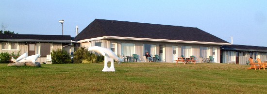 Arrivés à Ste Anne-des-monts dans l'après-midi nous nous installons au motel Beaurivage, au bord du fleuve. Un grand espace gazonné nous sépare de l'eau et nous profitons du beau soleil pour prendre un peu de repos.Motel Beaurivage