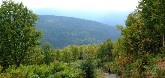 Journée réservée a une randonnée dans le parc national de Gaspésie. Nous y rencontrons 2 gardes forestiers qui nous disent qu'il y a très peu de monde ce matin et que nous pourrions voir des orignaux. Cette information nous motive un peu plus et nous partons à l'assaut du mont Joseph Fortin, les couleurs d'automne pointent timidement leurs nez, illuminant de ci de là la forêt. Le temps est brumeux, et arrivé au sommet nous n'avons pas une vue extraordinaire sur les collines environnantes, mais l'air y est vivifiant et la température assez douce. Et toujours pas d'orignal.