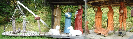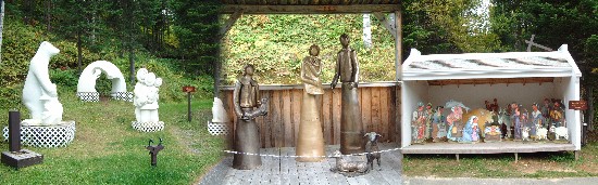 La fin du voyage approche nous redescendons vers le St-Laurent en longeant la Saguenay. Forêts, lacs, rivières et villages pimpants jalonnent notre route. L'agglomération de Rivière Eternité nous surprend par une étonnante exposition de crèches en plein air. Surnommée la Betlehem des neiges elle a su attirer de nombreux artistes non seulement Canadiens mais internationaux.