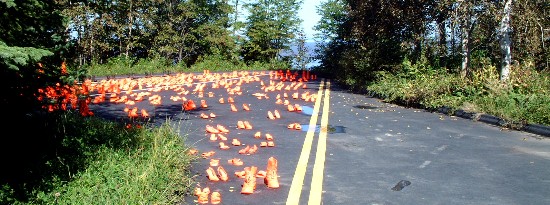 Arrivés dans l'après-midi à Montréal, nous prenons rapidement la route pour la péninsule de la Gaspésie. Nous découvrons le très célèbre Saint Laurent, mais à Montréal il n'est pas encore impressionnant. Le lendemain nous continuons à longer le fleuve, mais de grosses intempéries générées par la queue du cyclone INES nous gâche la journée. Nous nous arrêtons pas trop tard dans un motel et dînons à proximité dans un restaurant bien agréable. La restauration au Québec est plus semblable à la notre que celle des Etats Unis, mais les portions sont identiques à celles des USA (pantagruélique).